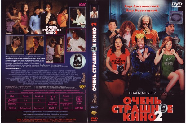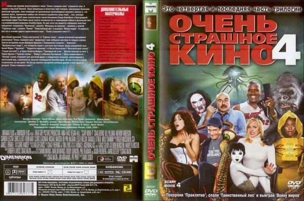 ![]() Очень страшное кино / Scary Movie (2000) DVD5 Очень страшное кино 2 / Scary Movie 2 (2001) DVD9 ![]() Информация о фильме Название: Очень страшное кино 2 Оригинальное название: Scary Movie 2 Год выхода: 2001 Жанр: комедия Режиссер: Кинен Айвори Уайанс В ролях: Анна Фэрис, Марлон Уайанс, Шон Уайанс, Тори Спеллинг, Энди Рихтер, Наташа Лионн, Крис Эллиот, Реджина Холл, Кристофер Мастерсон, Тим Карри О фильме: Отыгравшись по полной программе в фильме «Очень страшное кино» на молодежных ужастиках, создатели картины окончательно потеряли стыд и совесть! Теперь пришла очередь киноклассики «Изгоняющий дьявола», «Полтергейст», «Кладбище домашних животных» и таких блокбастеров как: «Ангелы Чарли», «Миссия невыполнима 2», «Что скрывает ложь», «Ганнибал», «Призрак дома на холме». Мало не покажется! ![]() ![]() лицам до 17 лет обязательно присутствие взрослого Страна: США, Канада Студия: Brillstein-Grey Entertainment, Dimension Films, Gold/Miller Productions, Wayans Bros. Entertainment Продолжительность: 79 мин. / 01:19 Перевод: полное дублирование Файл Кодек: MPEG2 Качество: DVD9 "West Video" Видео: PAL 16:9 (720x576@1024x576) VBR 6321 Kbps, 25.000 fps Аудио: Dolby AC3, 6 ch, 48.0 KHz, 448 Kbps (русский, английский) Субтитры: русские Размер: 6.85 GB Очень страшное кино 3 / Scary Movie 3 (2003) DVD9 ![]() Информация о фильме Название: Очень страшное кино 3 Оригинальное название: Scary Movie 3 Год выхода: 2003 Жанр: комедия Режиссер: Дэвид Цукер В ролях: Анна Фэрис, Энтони Андерсон, Лесли Нильсен, Камрин Менхейм, Саймон Рекс, Джордж Карлин, Памела Андерсон, Дженни МакКарти, Марни Энг, Чарли Шин О фильме: Журналистка Синди Кэмпбелл охвачена желанием сделать скандальный репортаж о каком-нибудь мировом заговоре и открыть самые секретные материалы! Кто ищет, тот всегда найдёт: вскоре Синди становится свидетельницей необъяснимых явлений. На Землю вот-вот высадится десант зловещих инопланетян, на полях появились странные концентрические круги, некий Избранный пророчит нехорошее всему человечеству, дети со странными глазами пугают взрослых, под угрозой жизнь самого Президента, а амбициозные белые рэперы совершили подозрительный прорыв в мире шоу-бизнеса! Зло наступает со всех сторон, и Синди должна сражаться, чтобы спасти мир еще раз! ![]() ![]() детям до 13 лет просмотр не желателен Страна: США, Канада Студия: Brad Grey Pictures, Dimension Films Продолжительность: 81 мин. / 01:21 Перевод: полное дублирование Файл Кодек: MPEG2 Качество: DVD9 "West Video" Видео: PAL 16:9 (720x576@1024x576) VBR 5597 Kbps, 25.000 fps Аудио 1: Dolby AC3, 6 ch, 48.0 KHz, 384 Kbps (русский, английский) Аудио 2: DTS 6 ch, 48.0 KHz, 768 Kbps (русский) Субтитры: русские Размер: 6.68 GB Очень страшное кино 4 / Scary Movie 4 (2006) DVD9 ![]() Информация о фильме Название: Очень страшное кино 4 Оригинальное название: Scary Movie 4 Год выхода: 2006 Жанр: комедия Режиссер: Дэвид Цукер В ролях: Анна Фэрис, Реджина Холл, Крэйг Бирко, Билл Пуллман, Энтони Андерсон, Лесли Нильсен, Молли Шеннон, Майкл Мэдсен, Крис Эллиот, Кармен Электра О фильме: Журналистка Синди Кэмпбелл все еще не может оправиться после ужасных событий, произошедших с ней за последнее время. Чтобы сменить обстановку, она устраивается на работу сиделкой к пожилой женщине. Вскоре Синди знакомится с овдовевшим соседом Томом Райаном и влюбляется в него. Казалось бы, жизнь начинает налаживаться, как вдруг на Землю высаживаются инопланетяне, которые хотят уничтожить все человечество. Том и Синди вступают в отчаянную схватку с пришельцами… ![]() ![]() детям до 13 лет просмотр не желателен Страна: США, Канада Студия: Brad